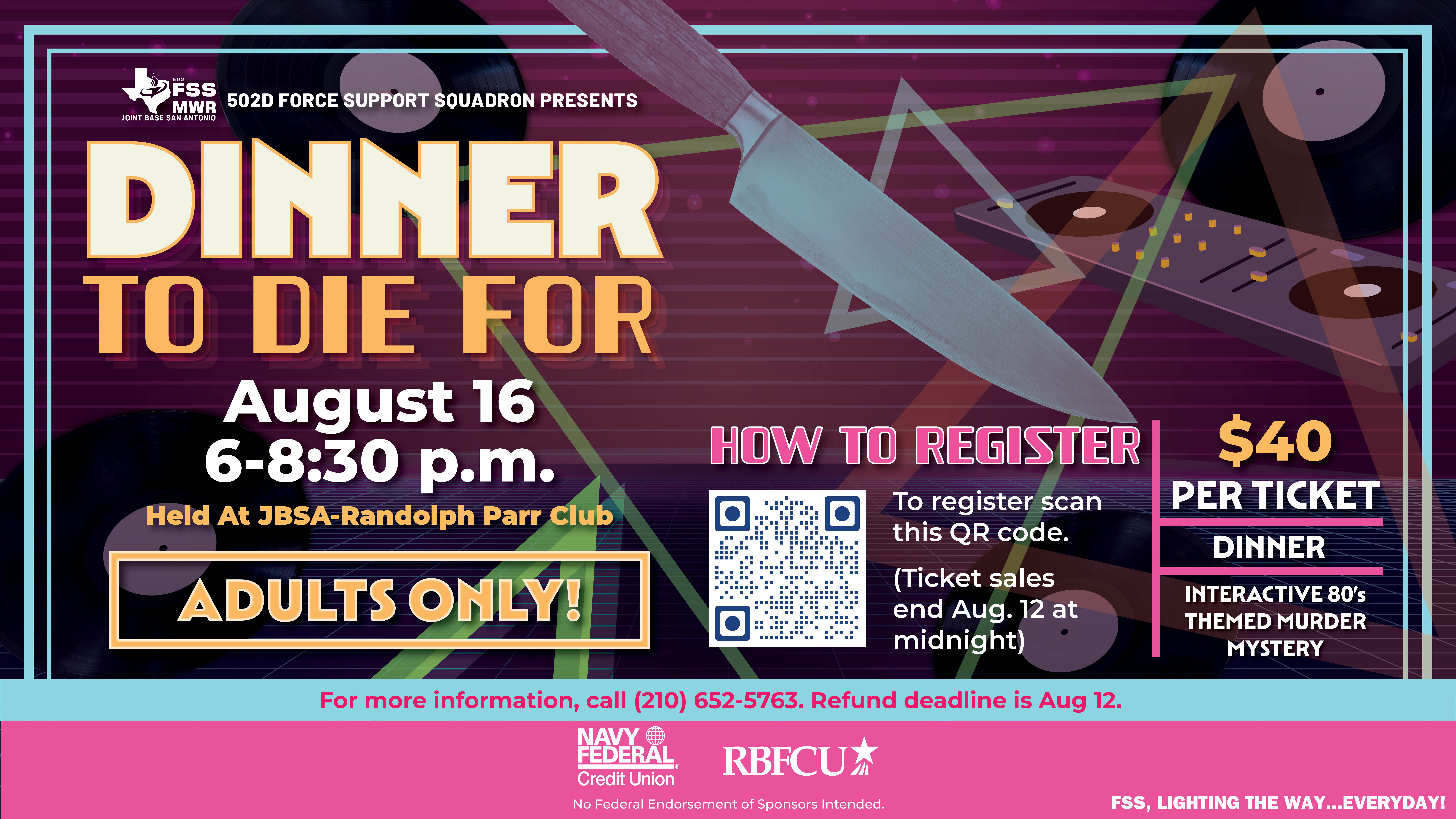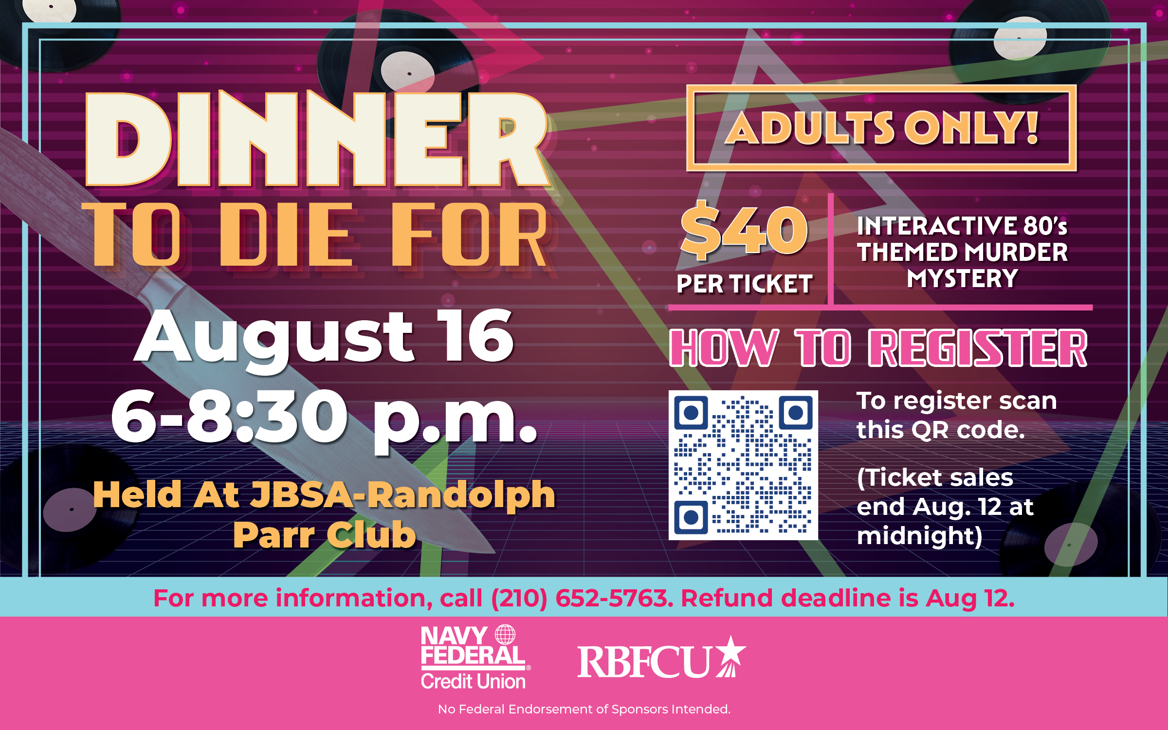 A design was needed for Joint Base San Antonio’s annual interactive murder mystery event, Dinner To Die For. With a new theme and story, the client needed a designer to translate the new vision into a reality across the necessary media.