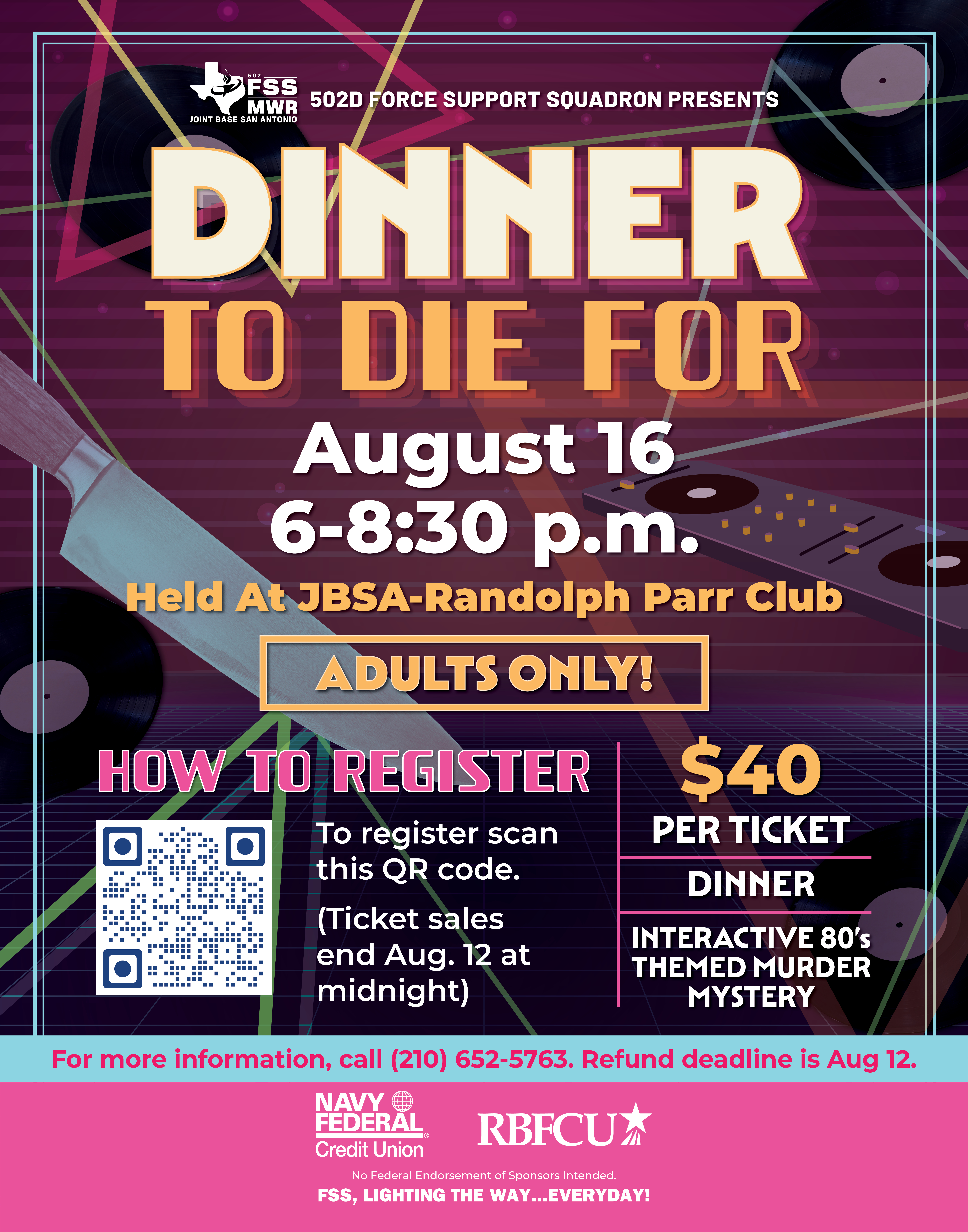 The Joint Base San Antonio 502d FSS is the home of all MWR activities across Joint Base San Antonio: JBSA-Fort Sam Houston, JBSA-Lackland, JBSA-Randolph, JBSA-Camp Bullis and JBSA Recreation Park at Canyon Lake.